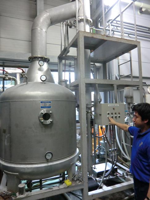 ご存知の方もいらっしゃるかもしれませんが、 酔鯨では日本酒以外に焼酎の製造も細々と行っております。 細々ではありますが、酵母の選定、発酵温度のコントロール、 蒸留前の固液分離、蒸留後の香り成分のバランス等 こだわりをもって丁寧に製造しています。 この焼酎を原料の一部として、「ゆず」のリキュールも 製造しています。 もちろん、焼酎としての商品「とさ」もあります。 焼酎の製造は夏場、日本酒の製造がひと段落いついた後に 行います。 写真は蒸留の様子です。 原料処理や蒸留の工程ではボイラー蒸気を使用するので 製造担当者は汗だくです。 でも本場九州の焼酎に負けず劣らず立派な製品に仕上がると 暑さも吹っ飛びます。 PR |