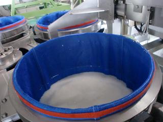 浸漬の目的は、蒸しに必要な水分を米粒に与えることにあります。一方、水分を与えすぎると蒸米が軟らかくなりすぎてしまいます。そこで、当社では大半の仕込みを限定吸水(短時間浸漬法)で行い、水分調整を正確に行なっております。洗米や浸漬の工程は、以前はストップウォッチを片手に手作業で行なっておりましたが、H16BYより機械式の洗米浸漬装置を導入しました。